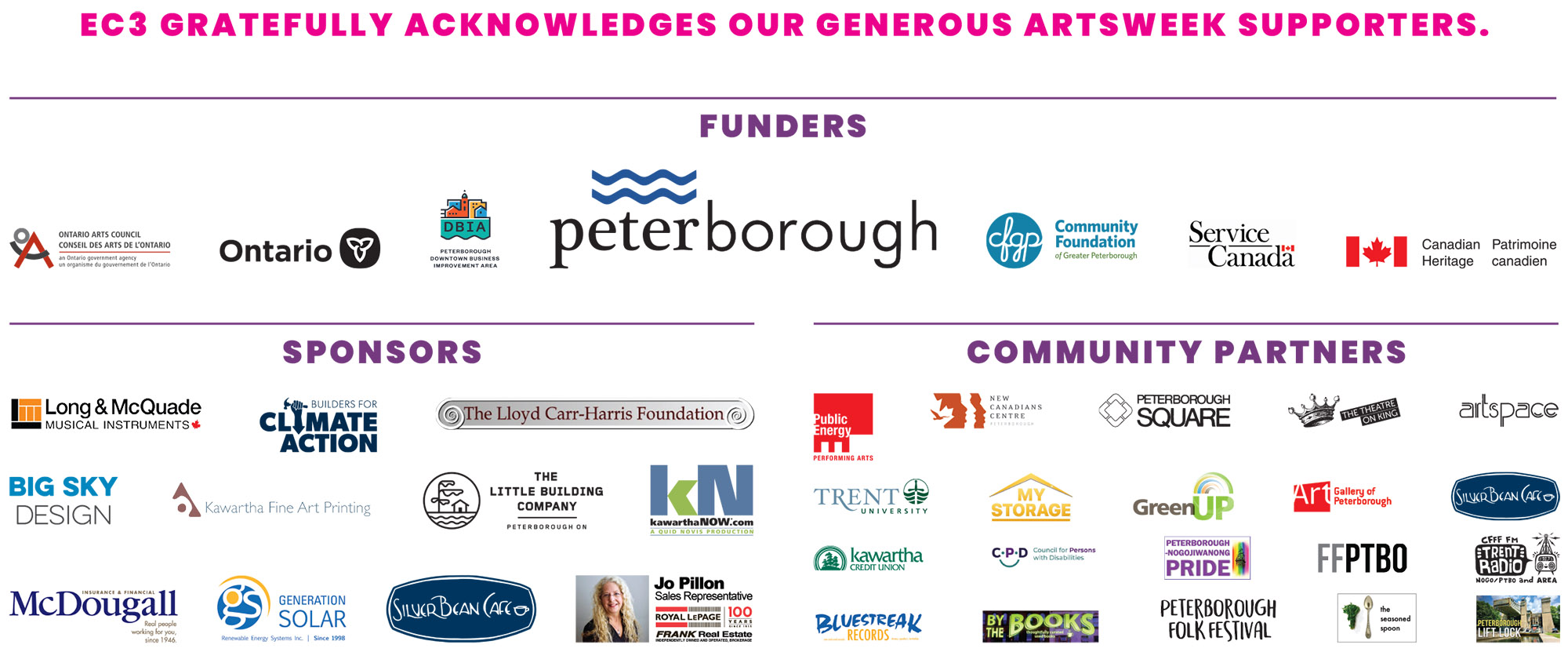 We are grateful to be here, and pledge to listen and learn from traditional Indigenous knowledge and ways. EC3 is committed to doing all we can to further efforts at real Truth and Reconciliation, which includes providing support to the artistic work of Indigenous artists, examining the ways we do this, and providing a space and a platform for Indigenous voices to be heard and respected.